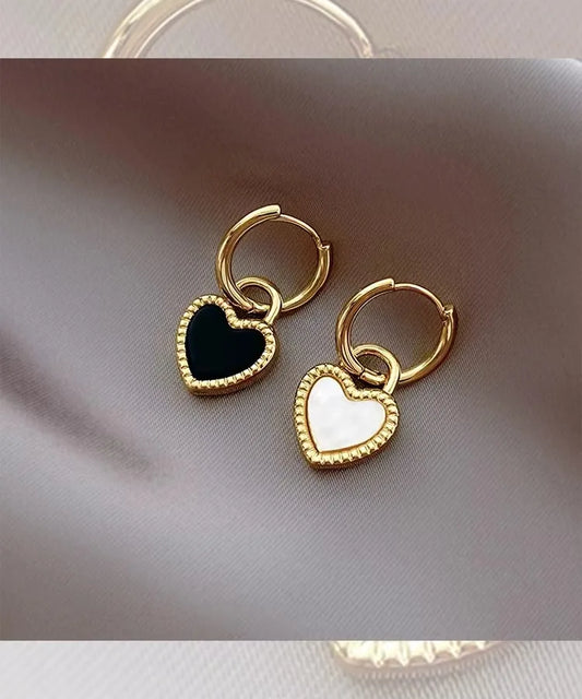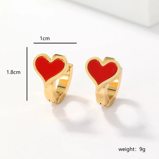 1 Par Estilo Simple Estilo Romano Forma De Corazón Esmalte Acero inoxidable 304 Chapado En Oro De 14 Quilates. Pendientes De Gota