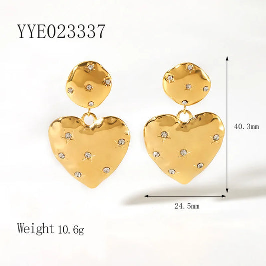 1 Par Básico Forma De Corazón Asimétrico Ahuecar Acero inoxidable 304 Diamantes De Imitación chapados en oro de 18k Pendientes Colgantes