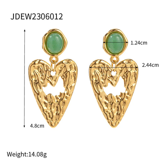 1 Par Elegante Retro Ronda Forma De Corazón Enchapado Embutido Acero inoxidable 304 Aventurina Pendientes De Gota
